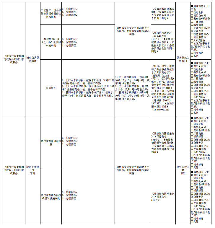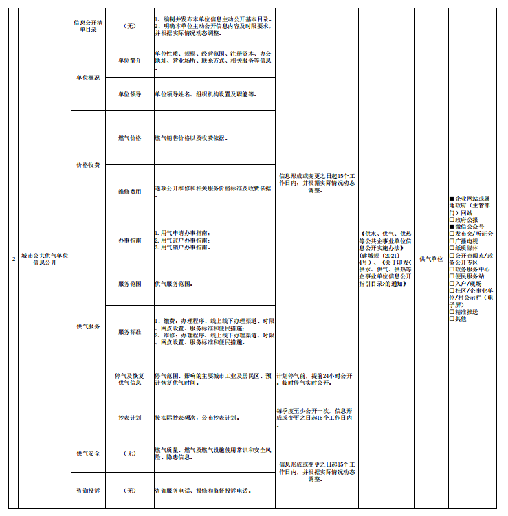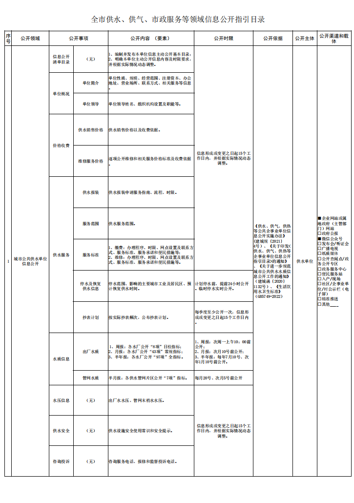 黃山市供水、供氣領(lǐng)域信息公開指引目錄