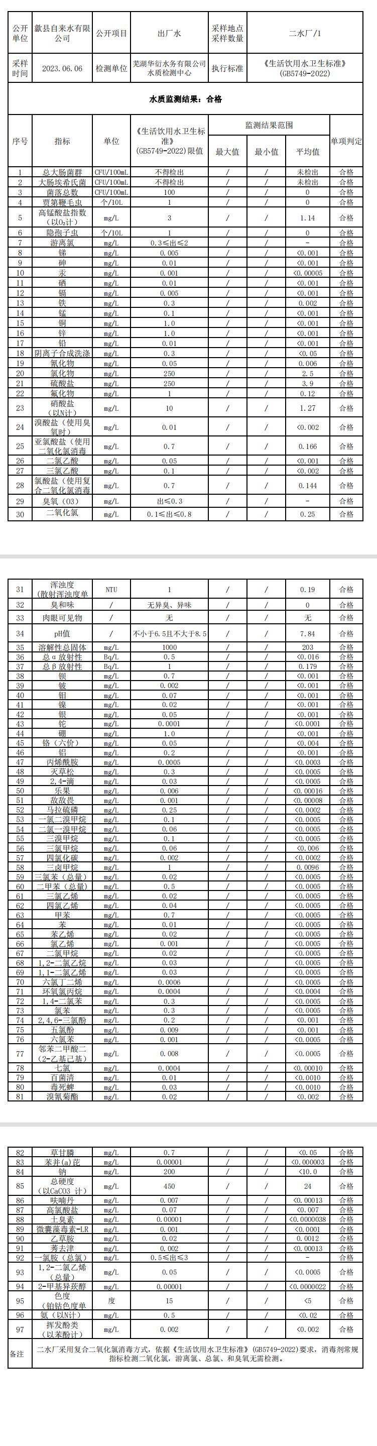 2023年6月出廠水水質信息公告
