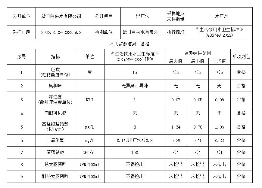 2023.8.28-2023.9.3出廠水質(zhì)信息公告