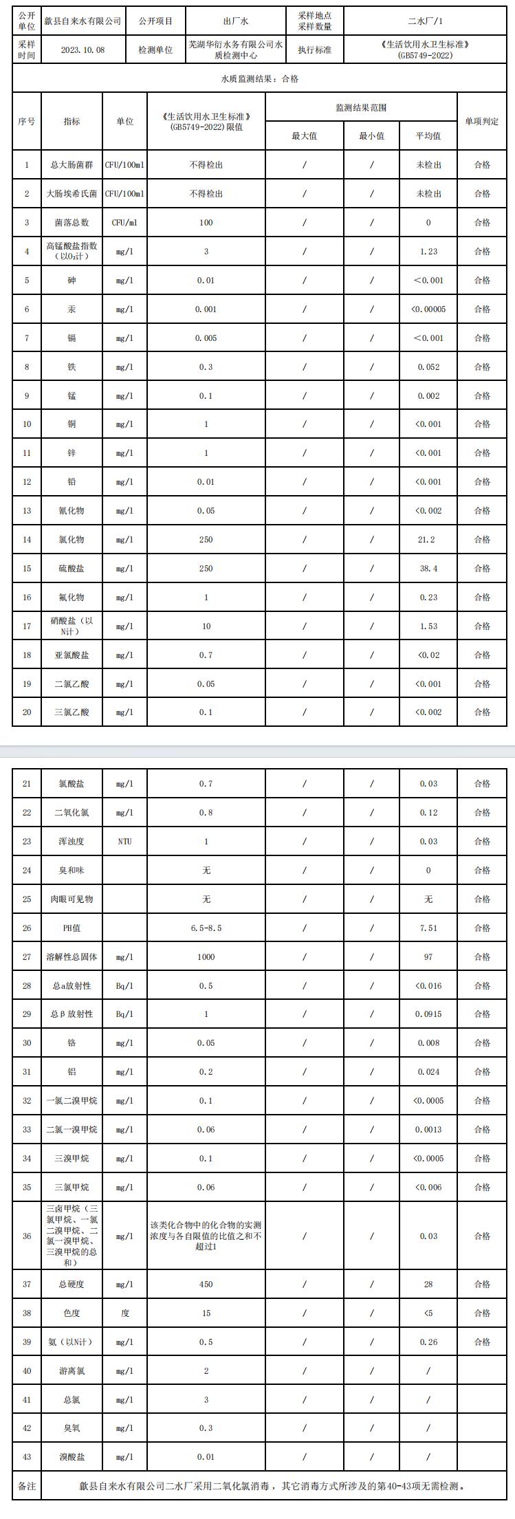 2023.10.23-2023.10.29出廠水質(zhì)信息公告