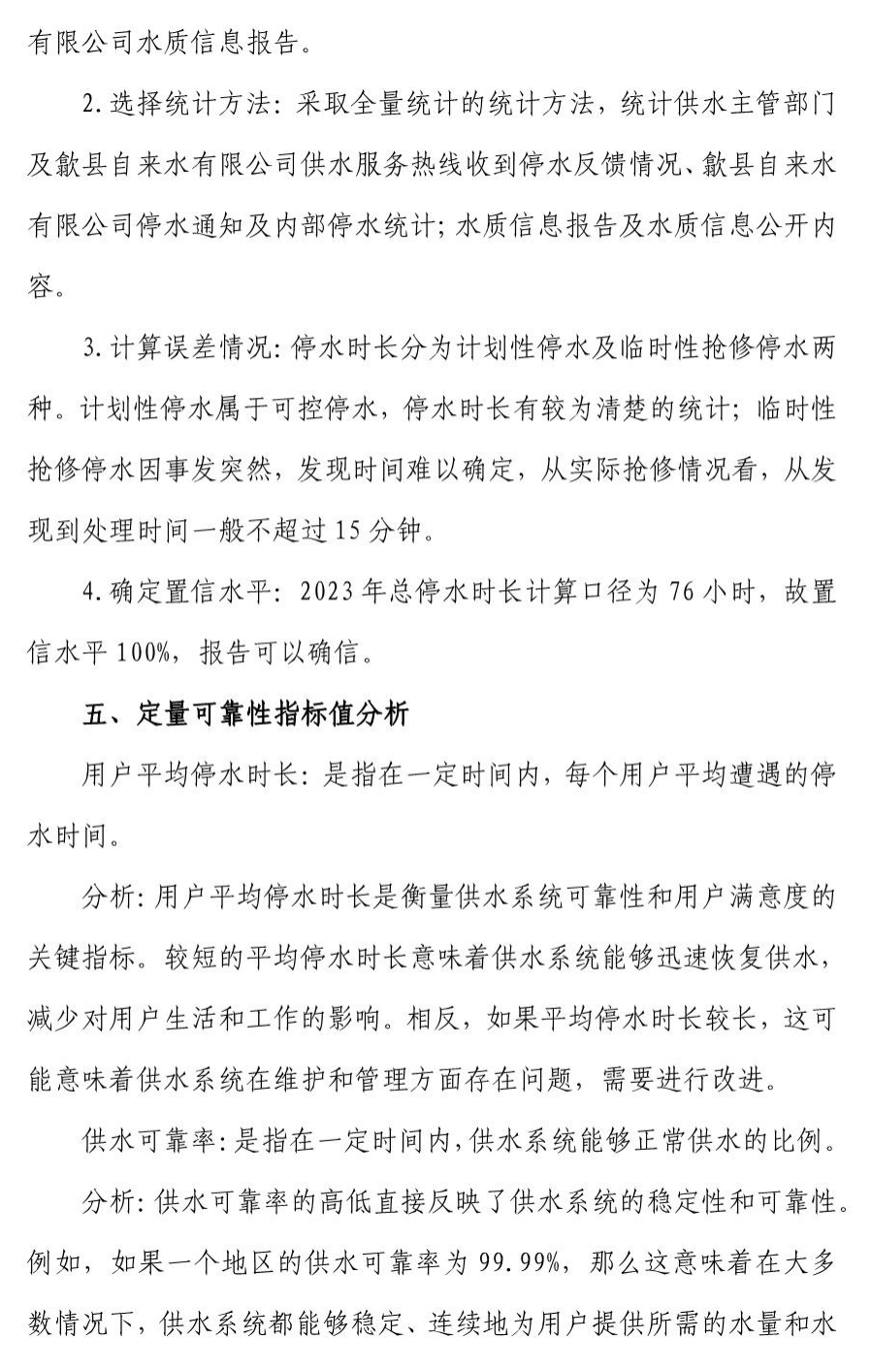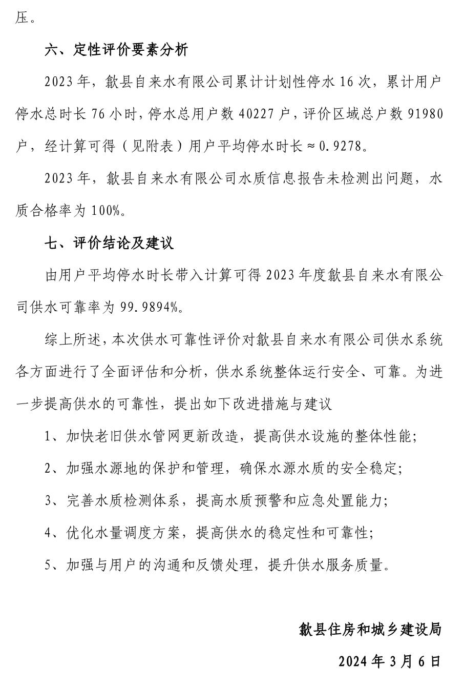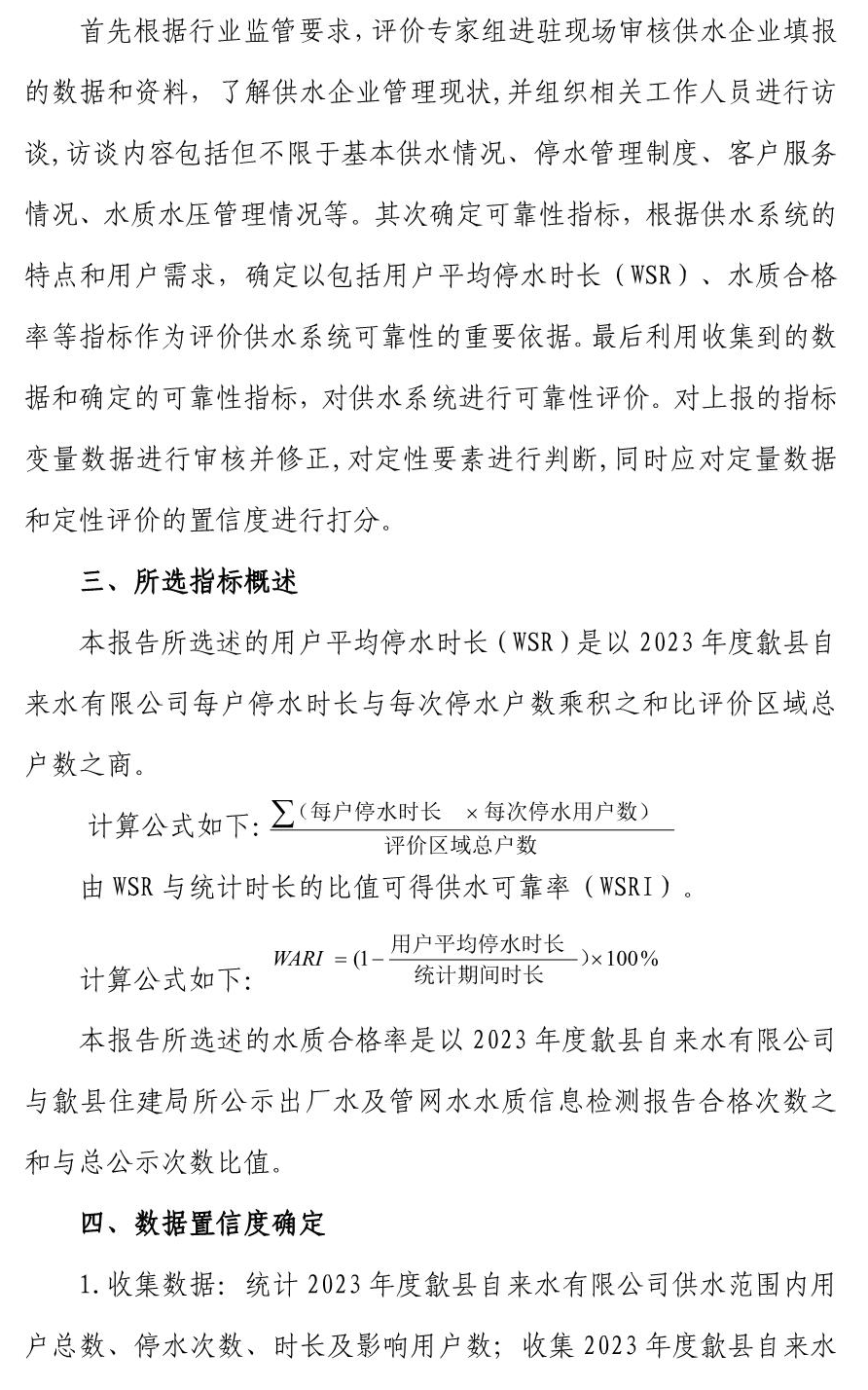 歙縣自來(lái)水有限公司供水可靠性評(píng)估報(bào)告 (2023 年)