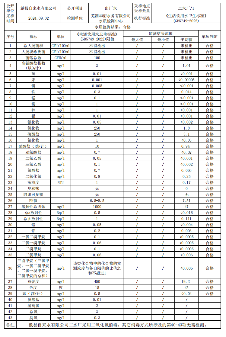 2024.9.30-2024.10.6出廠水質(zhì)信息公告
