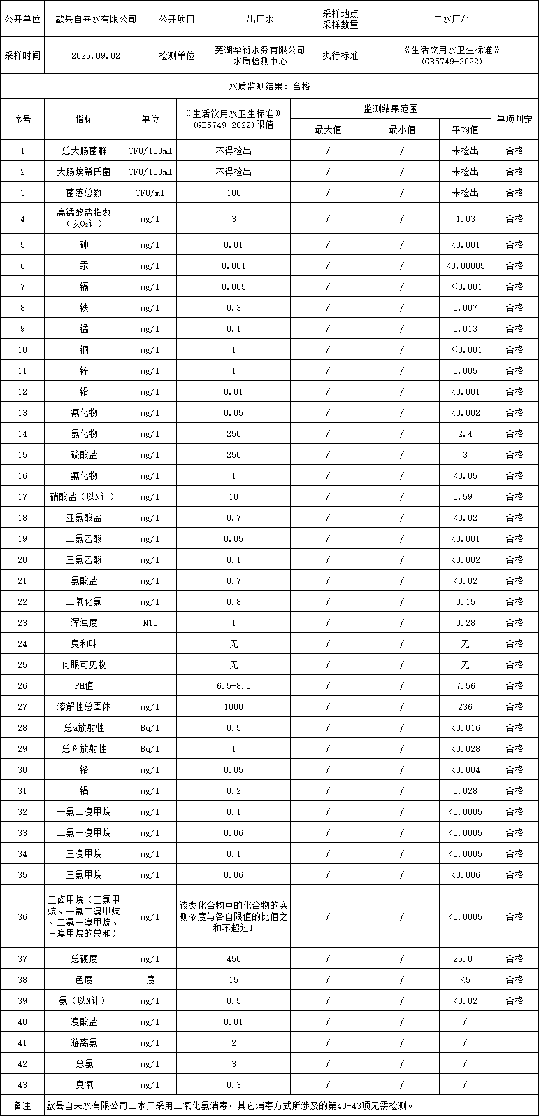 2025.9.29-2025.10.5出廠水水質(zhì)信息公告