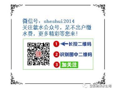 您只需搜索微信公眾賬號(hào)“sheshui2014”,或者直接搜索“歙縣自來水有限公司”微信賬號(hào),對(duì)公眾服務(wù)平臺(tái)進(jìn)行關(guān)注。