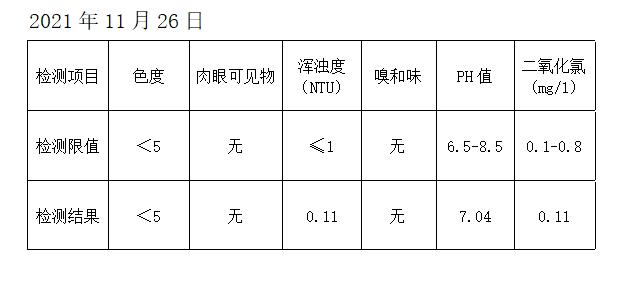 歙縣自來(lái)水有限公司2021年11月水質(zhì)報(bào)表