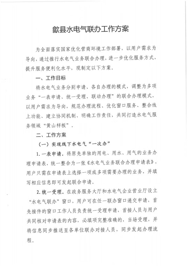 關(guān)于印發(fā)《歙縣水電氣聯(lián)辦工作方案(試行)》的通知