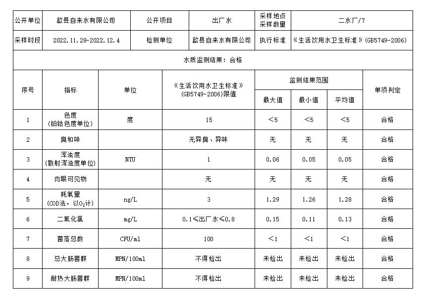 2022.11.28-2022.12.4出廠水質(zhì)信息公告
