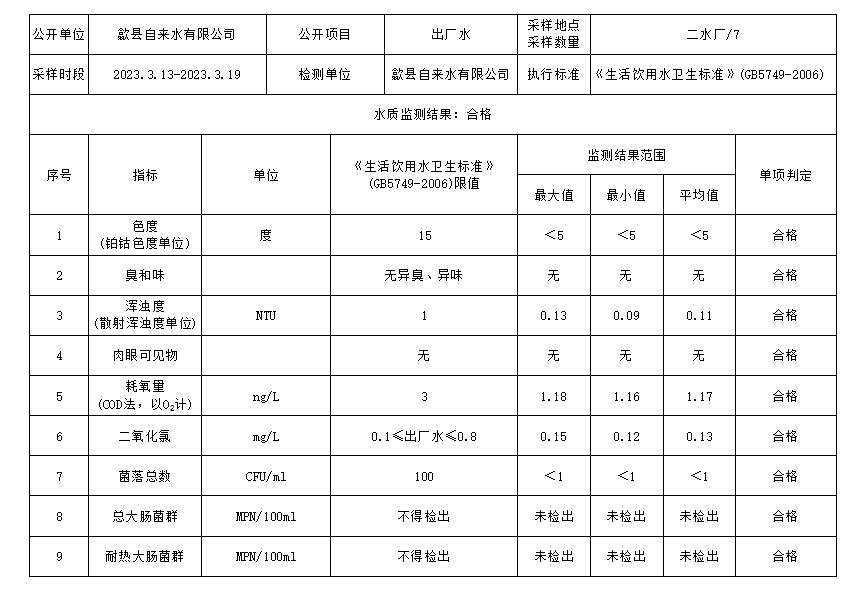 2023.3.13-2023.3.19出廠水質(zhì)信息公告