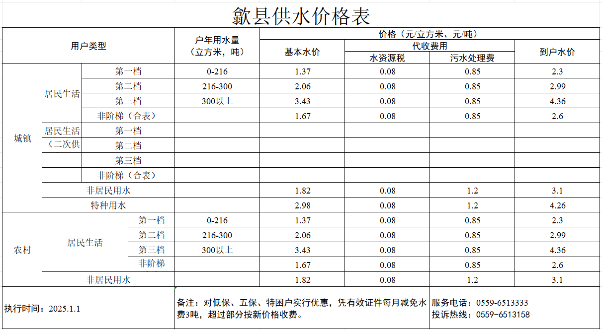 1.歙價〔2016〕76號《關于調整城區(qū)自來水價格和實行居民生活用水階梯價格的批復》。