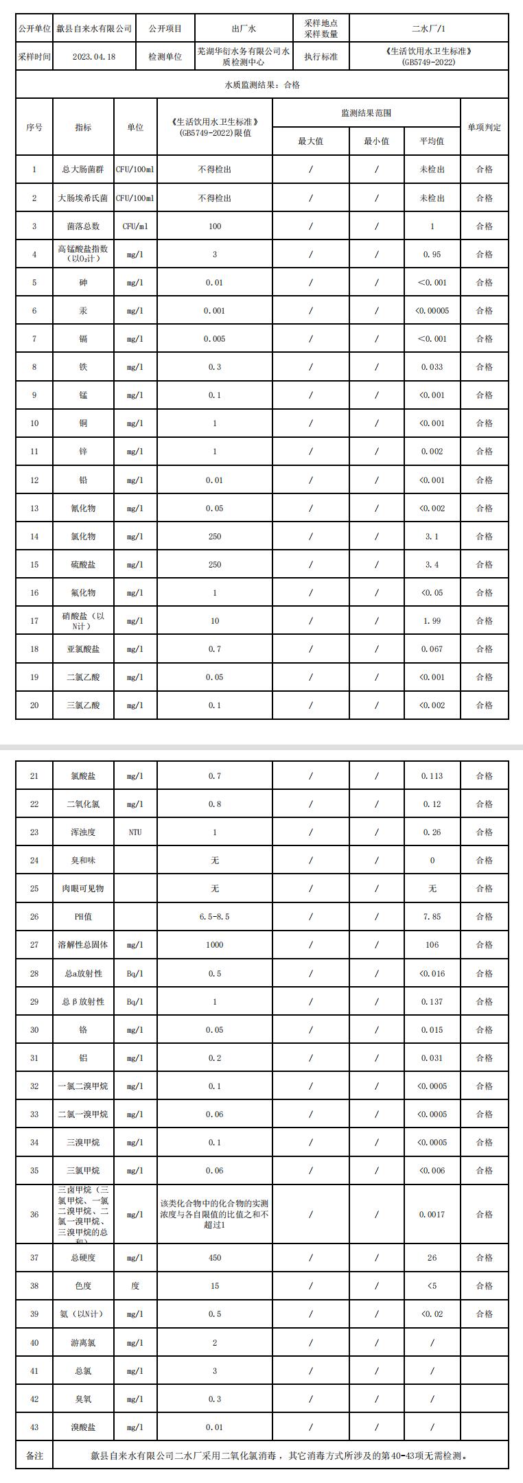 2023.4.24-2023.4.30出廠水質(zhì)信息公告