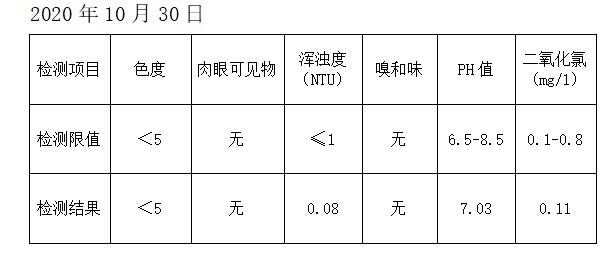 歙縣自來(lái)水有限公司2020年10月水質(zhì)報(bào)表